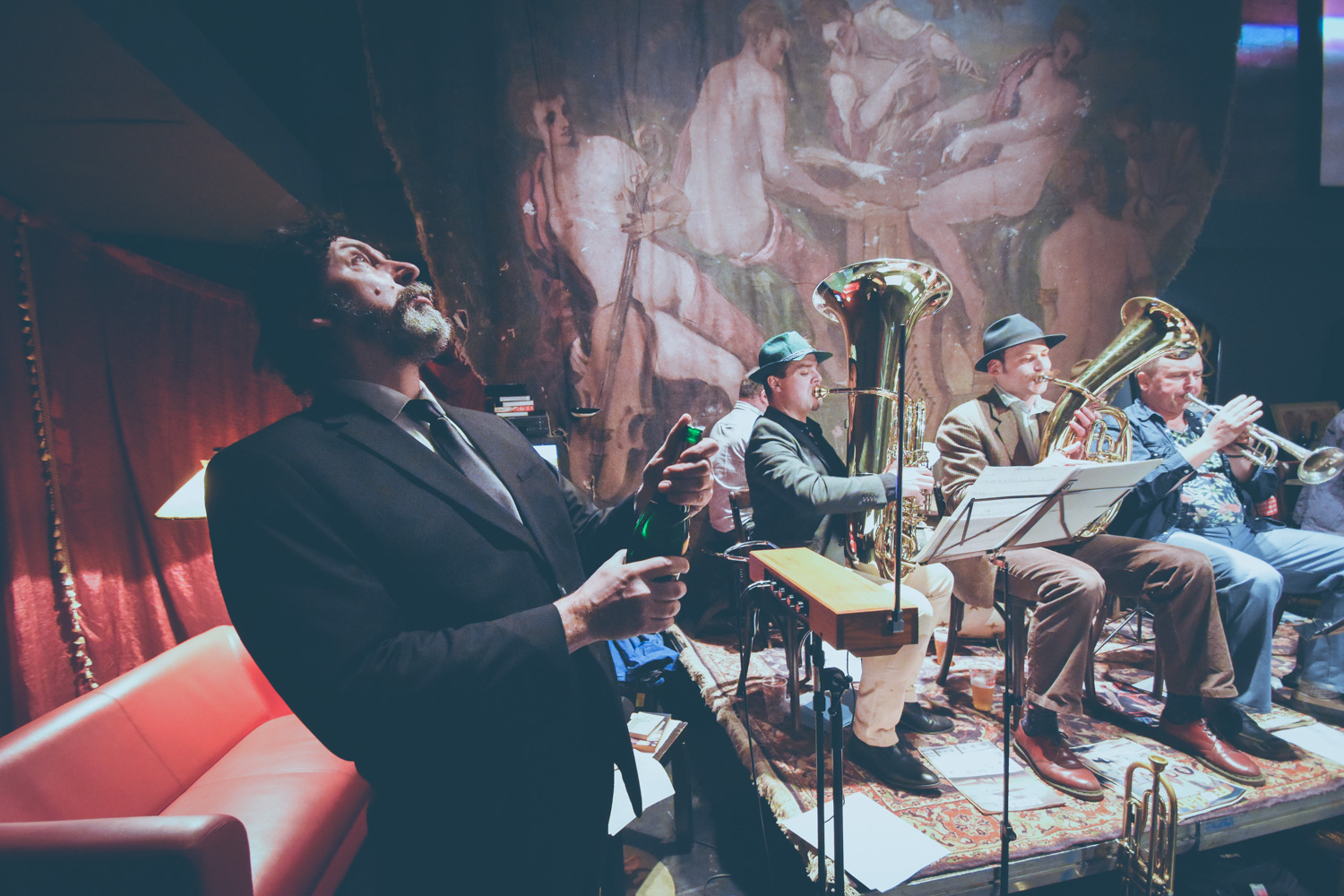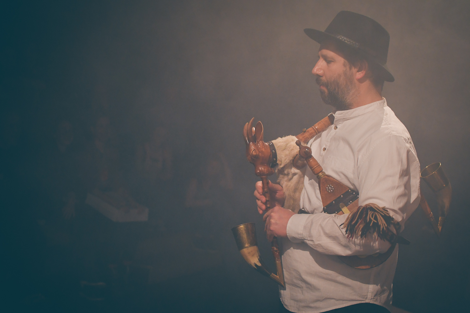 A folk performance with music, refreshments, and a raffle. A psychedelic version of Hrabalian “pábení” (chatter, palaver), creaking folk songs, Czech revival humor, and fun for everyone. Salami, trumpets, and hearty humor best understood by inhabitants of the Czech lands. Nobody knows how long it will last unless they stick around until the end. A folk performance that is not idyllic, but raw and cynical and sometimes derisive or just dark for no apparent reason.