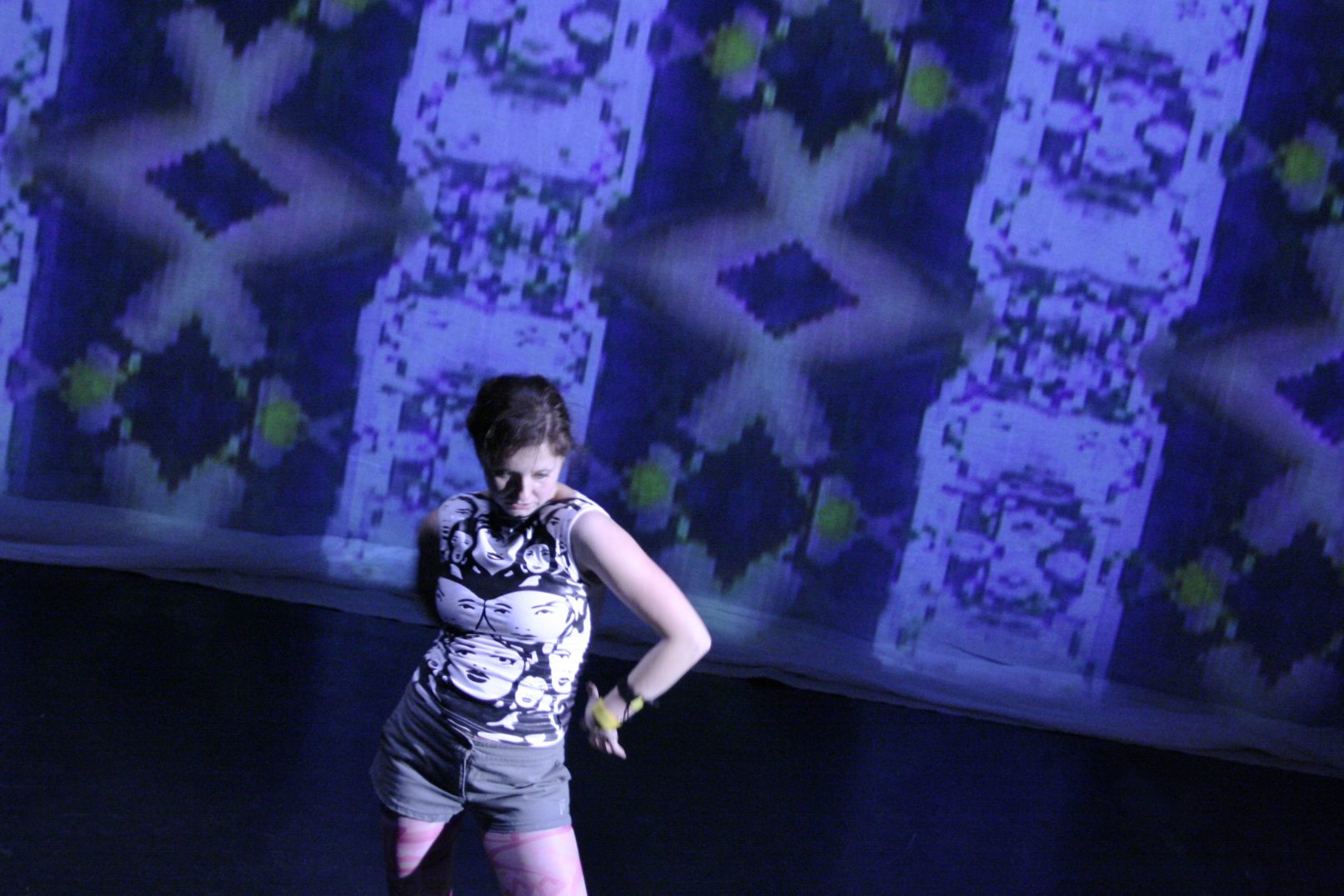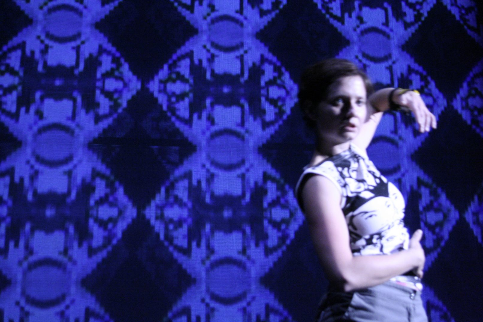 Práce s nejlacinějšími videopřístroji a realtimovým zpracováním videosignálu přicházejícího přímo z jeviště se doplňuje s minimalistickým pohybem a živou hudbou. Tanec sám rozehrává proud obrazů projektovaných na scénu a následně je jimi zpětně ovlivňován. Pohyb i projekce jsou pevně svázány, tanec většinou slouží videu jako nosič či iniciátor. Video vytváří naopak jakousi hyperbolu pohybu. Ocitáme se ve víru barev, psychedelických obrazů i útržků situací, které sem zabloudily odkudsi z domácího videa nebo bezpečnostních systémů v supermarketu. Objeví se i reminiscence na začátky fotografie,nebo klišé zábavního průmyslu. Úhelným kamenem představení je snaha o dokonalou vizuální koncepci, na druhé straně i demaskování jejích typických pracovních postupů. Hudba je dialogem mezi soudobou elektronikou (clicks´n´cuts, mikrosampling) a hrou na historické analogové přístroje. RGB – Druhá část trilogie BODY & TECHNOLOGY, která se zaměřuje především na práci s interaktivním videem. Kompozice pro živou hudbu, minimalistický pohyb, barvy, staré fotografie, psychedelické obrazy, útržky situací a video zpracovávané v reálném čase.